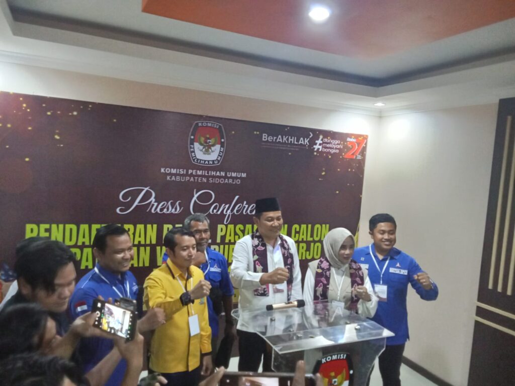 Kehadiran pasangan ini disambut antusias oleh para pendukung serta awak media yang telah menunggu sejak pagi. Dalam sambutannya, H. Subandi mengucapkan terima kasih kepada tiga partai pengusungnya, yaitu Partai Gerindra, Golkar, dan Demokrat, yang telah memberikan dukungan penuh dalam perjuangannya. Subandi juga menegaskan komitmennya untuk membangun Kabupaten Sidoarjo menjadi lebih baik dan berkeadilan.